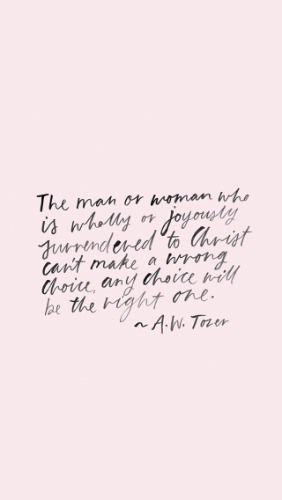 The man or woman who is wholly and joyously surrendered to Christ can’t make a wrong choice – any choice will be the right one. –AW Tozer