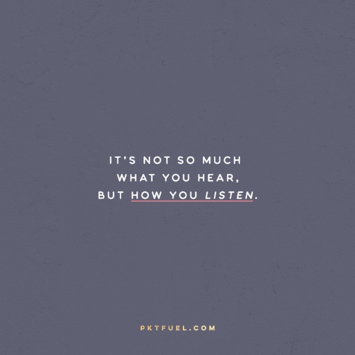 When you’re in a lecture, or you’re learning something new, there are a few different ways you can listen and take in the information. You can listen to, record and or memorize, storing the information in your brain so you can pull it out when you need it. This kind of listening is often buffeted with ambition and plans for success – it's dictated by where the hearer wants to go and how they want to use the information to get them there. What you want is the destination and the information, the tracks to get you there.